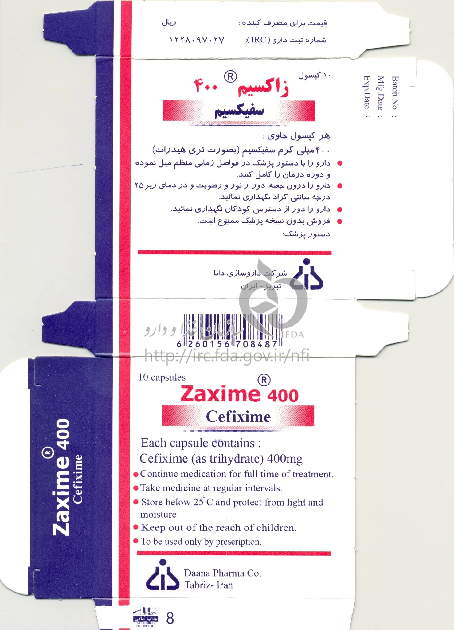 دکترها زاکسیم کپسول خوراکی 400 mg