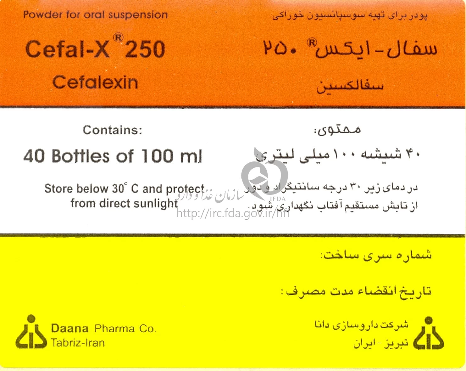 سفال - ایکس پودر برای تهیه سوسپانسیون خوراکی 250 mg/5 mL 100MILLILITER