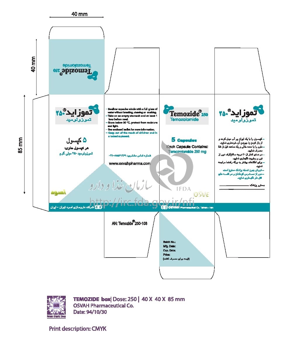 تموزاید کپسول خوراکی 250 mg