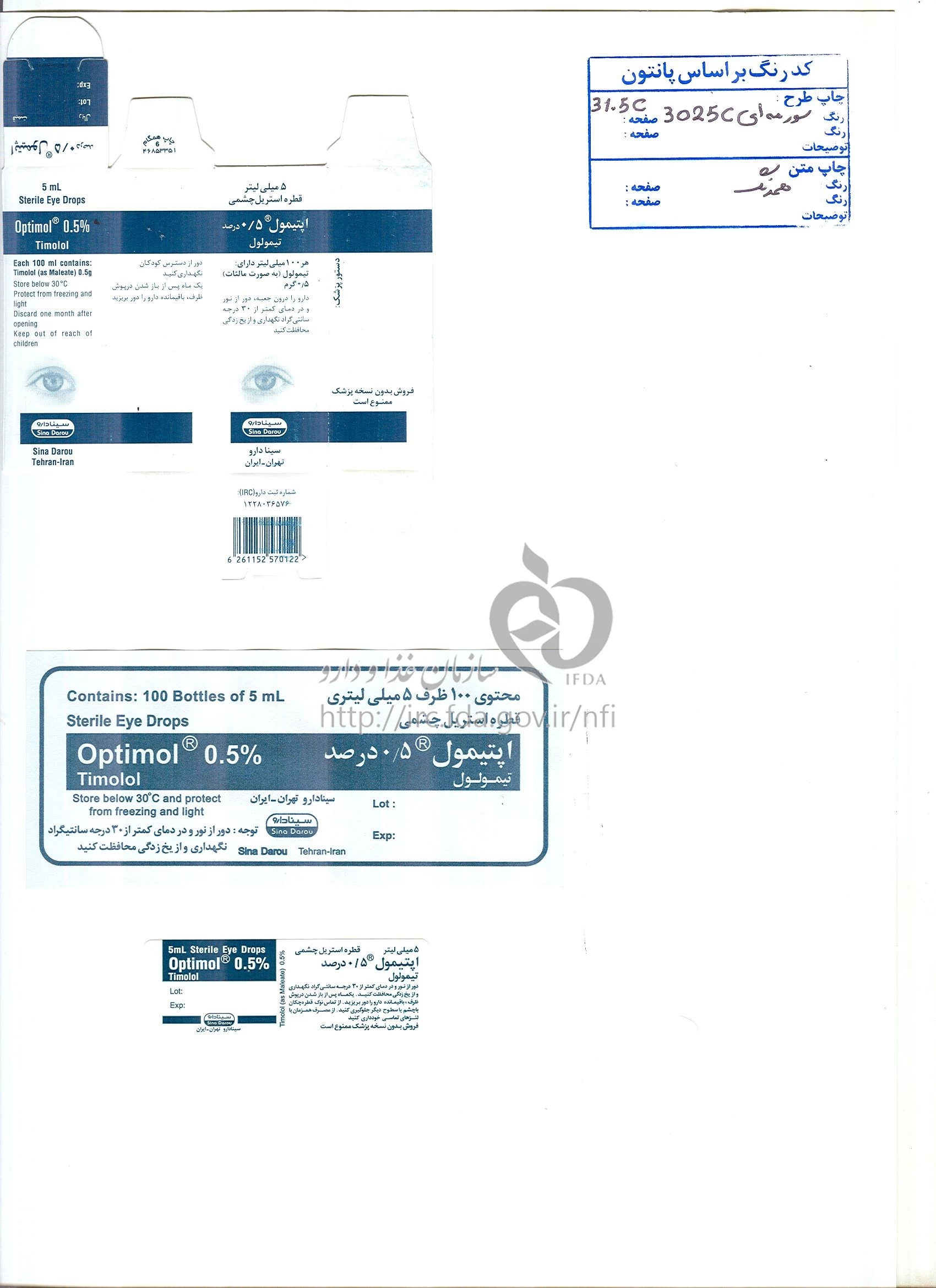 اپتیمول محلول ، قطره چشمی 0.5 % 5MILLILITER