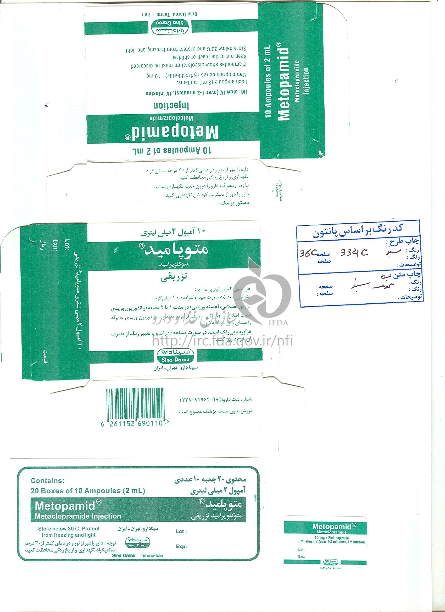 دکترها متوپامید تزریقی پرنترال 5 mg/1mL 2MILLILITER