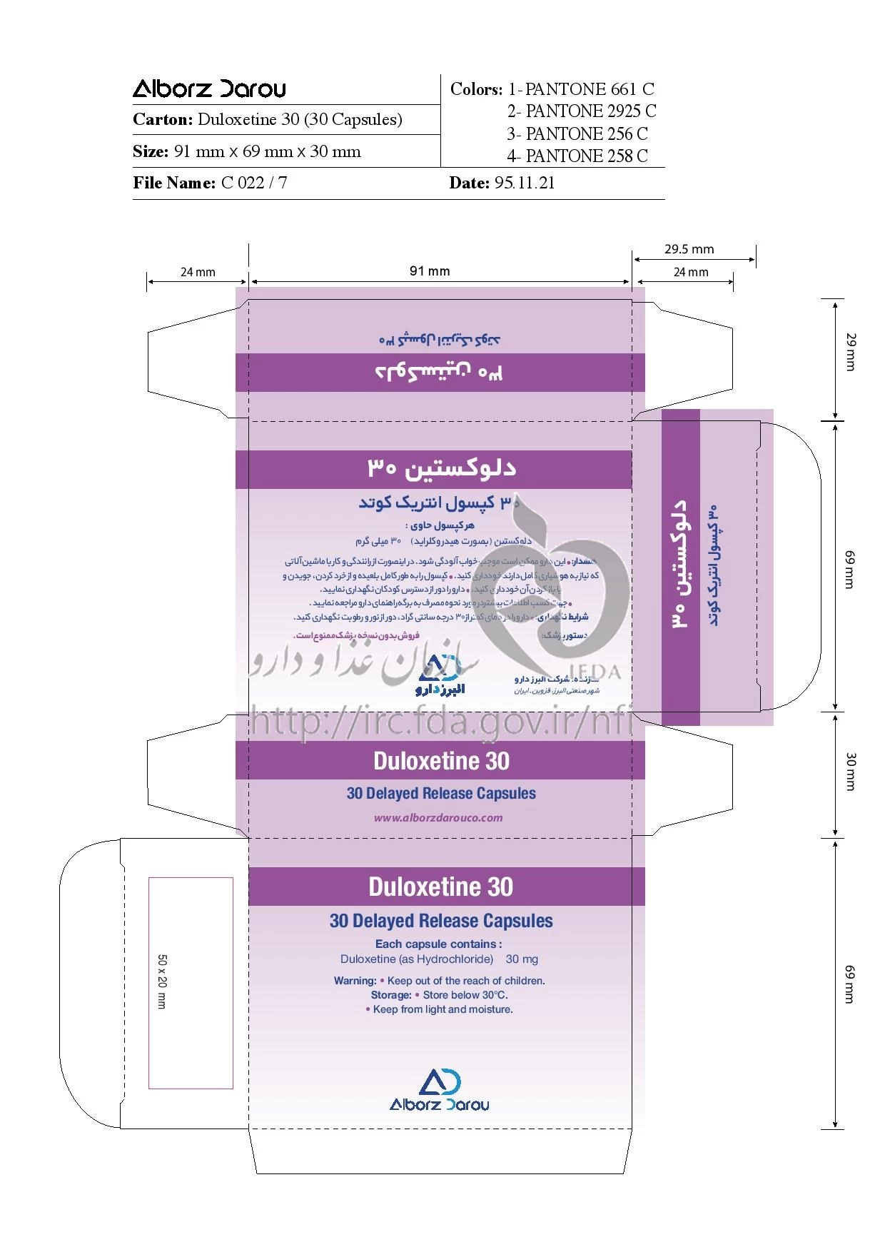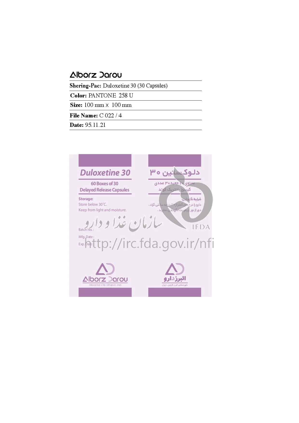 دلوکستین کپسول انتریک کوتد خوراکی 30 mg