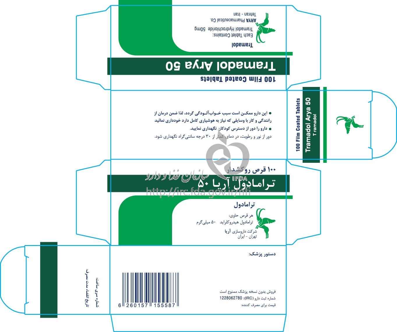 ترامادل آریا قرص خوراکی 50 mg