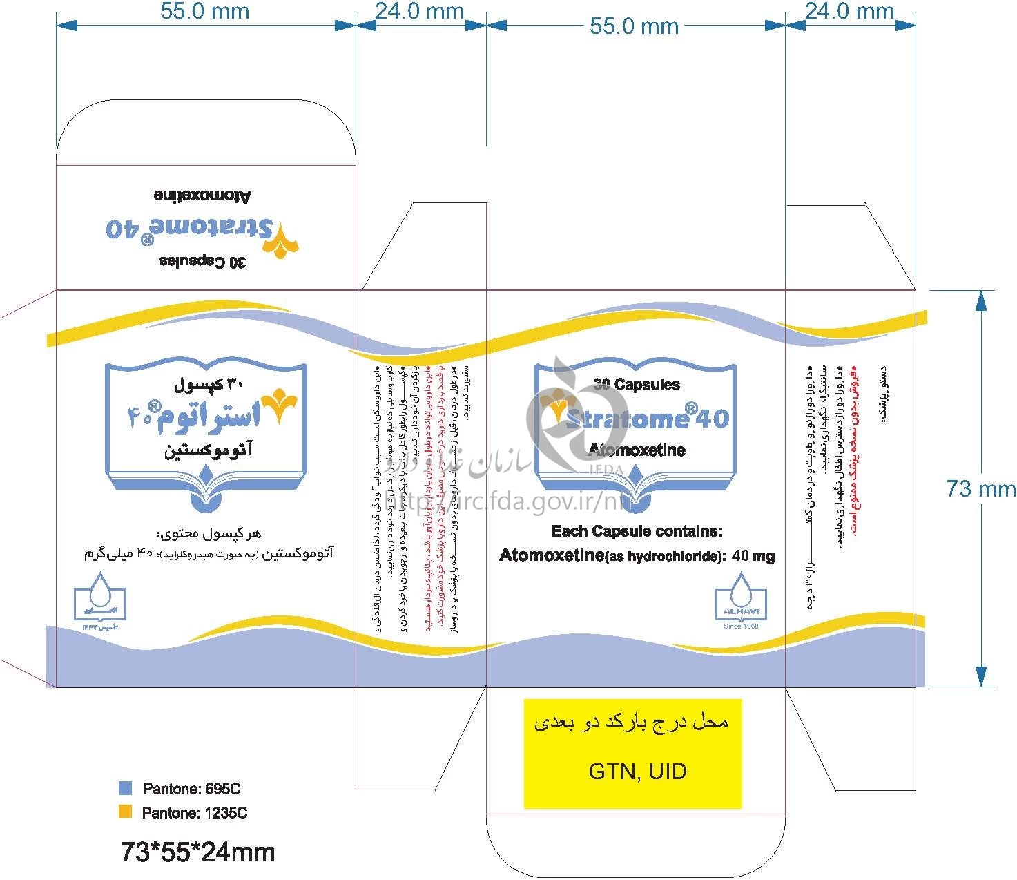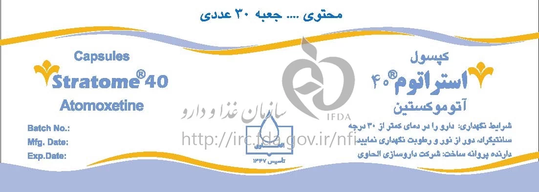 ATOMOXETINE HYDROCHLORIDE CAPSULE ORAL 40 mg یک داروی روان‌شناسی است که برای درمان اختلال نقص توجه/بیش‌فعالی در بزرگسالان و کودکان بالای 6 سال استفاده می‌شود. این دارو با کاهش فعالیت مغزی در قسمت‌هایی از مغز مرتبط با کنترل توجه و هیجان، باعث بهبود توانایی تمرکز، کاهش بیش‌فعالی و کاهش نارسایی آگاهی می‌شود. معمولا مصرف این دارو به مدت چند هفته نیاز است. برای استفاده از این دارو، باید به دقت دستورات پزشک را دنبال کرده و دوز را مطابق توصیه پزشک مصرف کنید. این دارو باید به صورت خوراکی مصرف شود و می‌تواند با یا بدون غذا مصرف شود. از جمله عوارض جانبی احتمالی این دارو می‌توان به سردرد، نفخ، تهوع، خشکی دهان، افزایش فشار خون و گاهی اوقات اضطراب اشاره کرد. قبل از مصرف این دارو باید با پزشک خود در مورد مزایا و معایب مصرف آن صحبت کرده و در صورت نیاز، با آزمایش های تکمیلی، مشکلات قلبی و عضلانی و اضطراب پزشکی بیشتر مورد بررسی قرار بگیرد.