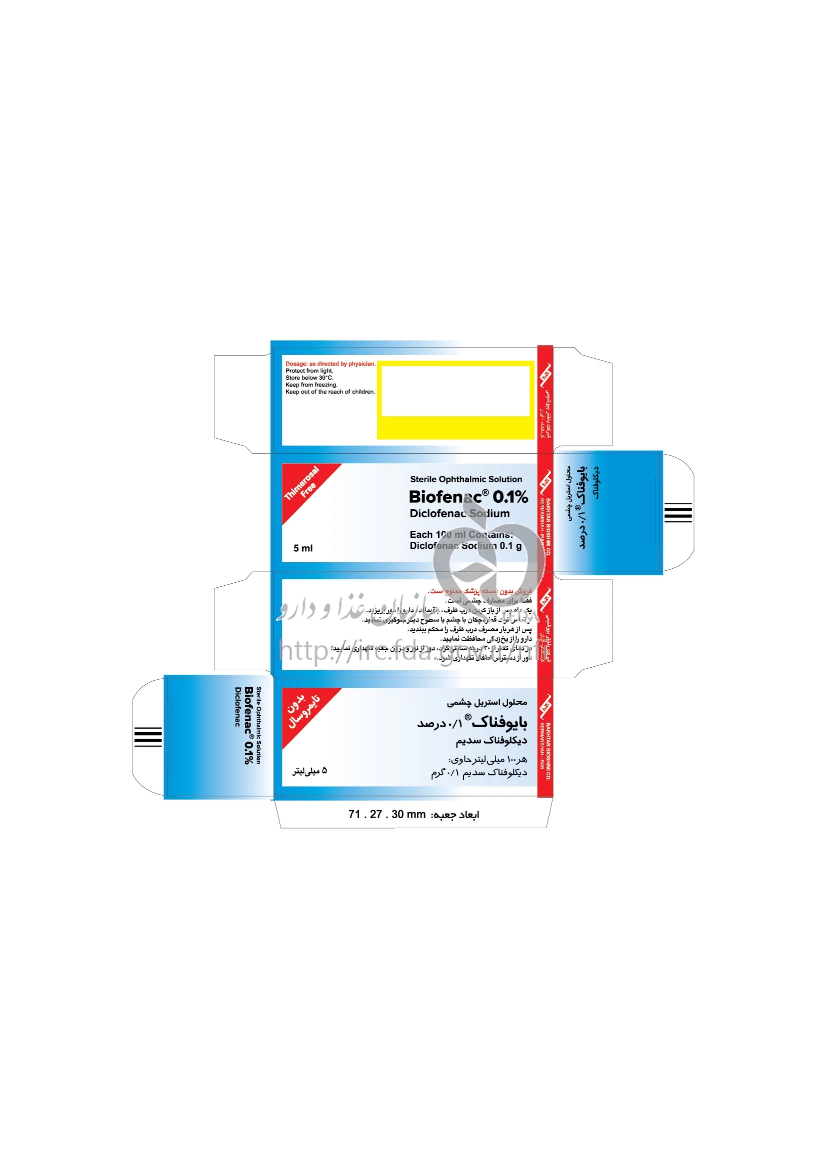 موارد مصرف ، عوارض جانبی ، مصرف بارداری و تداخلات دارویی بایوفناک محلول ، قطره چشمی 0.1 % 5MILLILITER