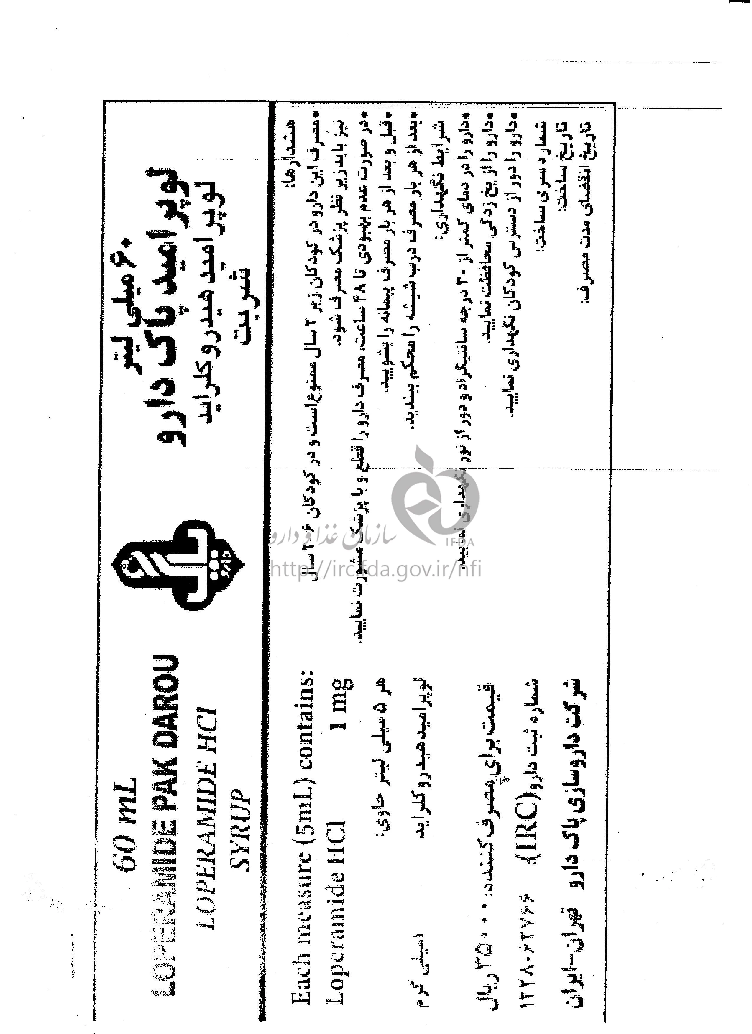 دکترها لوپرامید پاک دارو محلول خوراکی 1 mg/5mL 60MILLILITER