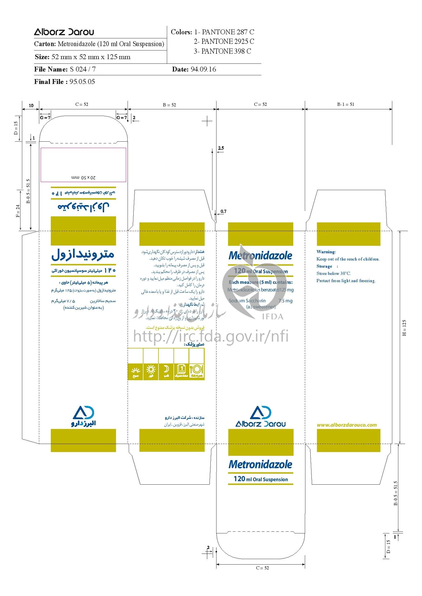 مترونیدارزول سوسپانسیون خوراکی 125 mg/5mL 120MILLILITER