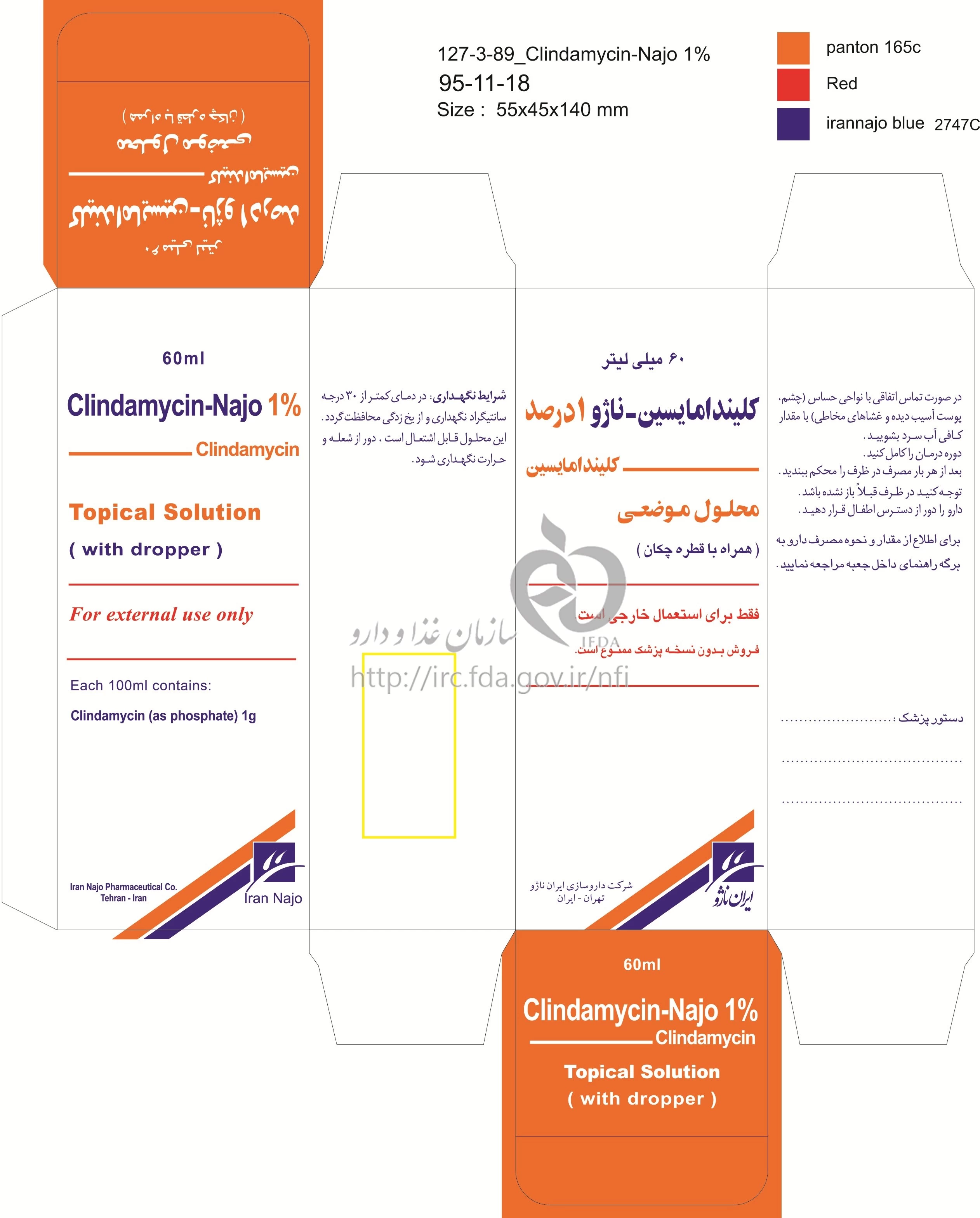 کلیندامایسین - ناژو محلول موضعی 10 mg/1mL 60MILLILITER