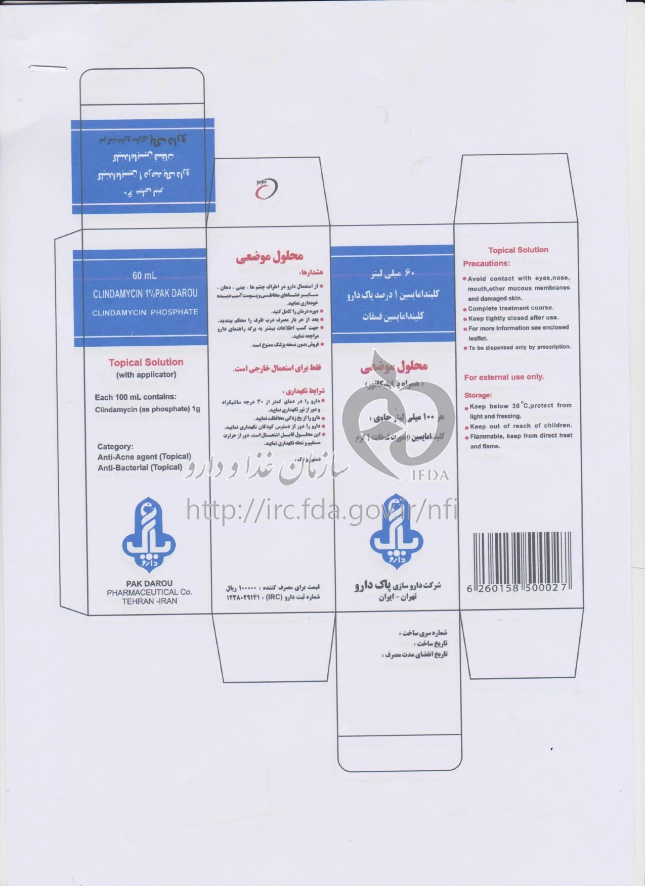 کلیندامایسین پاک دارو محلول موضعی 10 mg/1mL 60MILLILITER