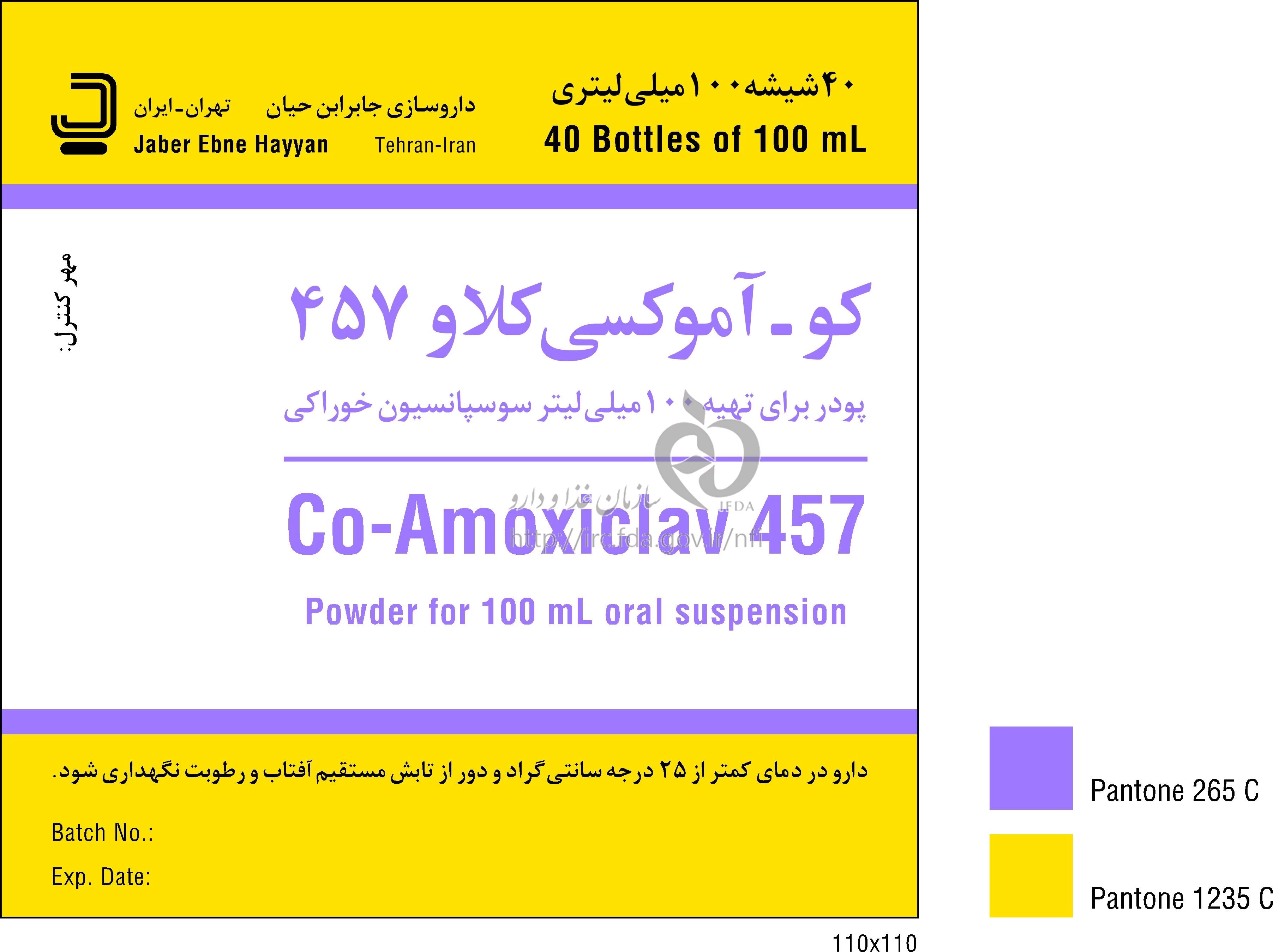 کو - آموکسی کلاو پودر برای تهیه سوسپانسیون خوراکی 400 mg/57 mg/5 mL 100MILLILITER