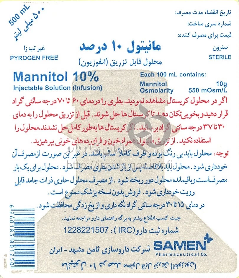 مانیتول محلول تزریقی داخل وریدی 10 % 500MILLILITER