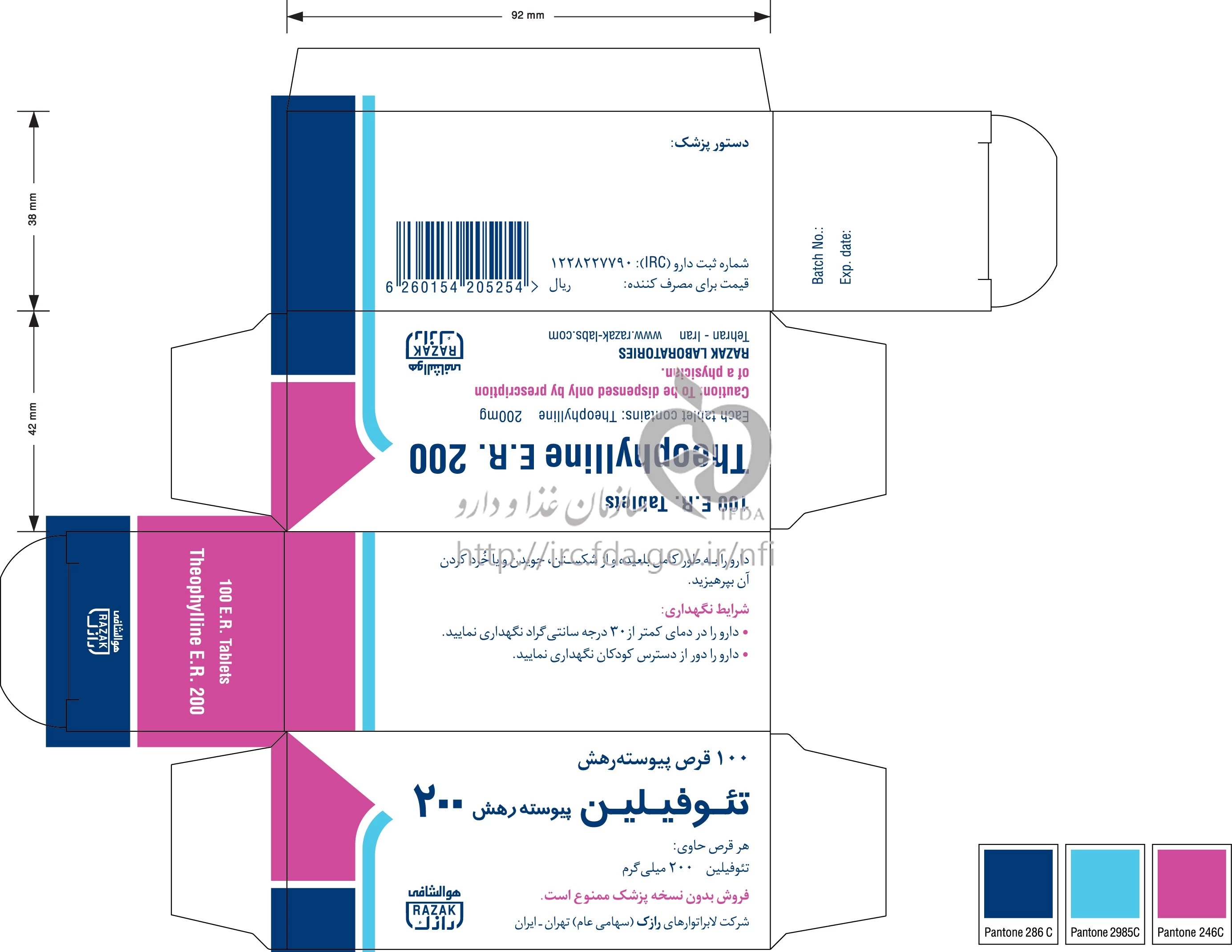 تئوفیلین قرص پیوسته رهش خوراکی 200 mg