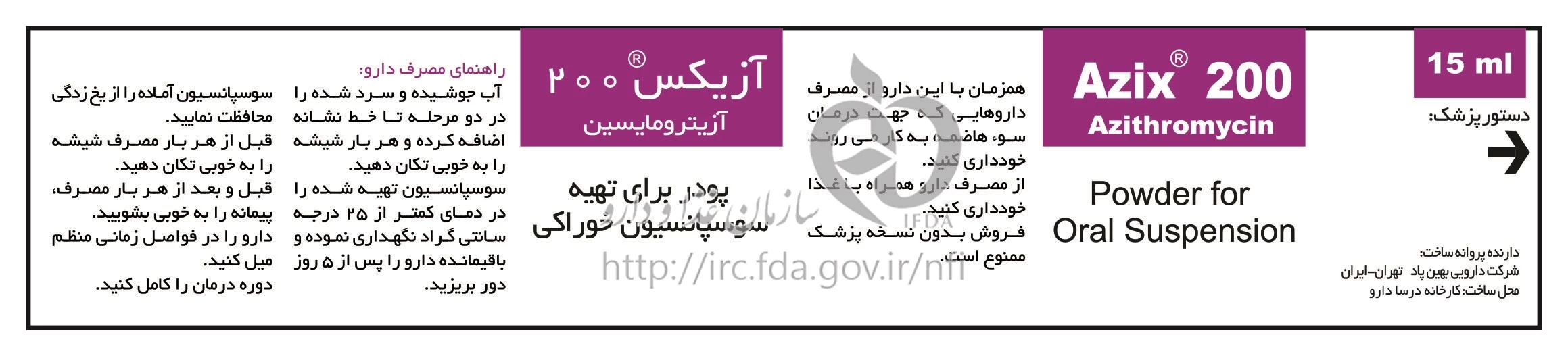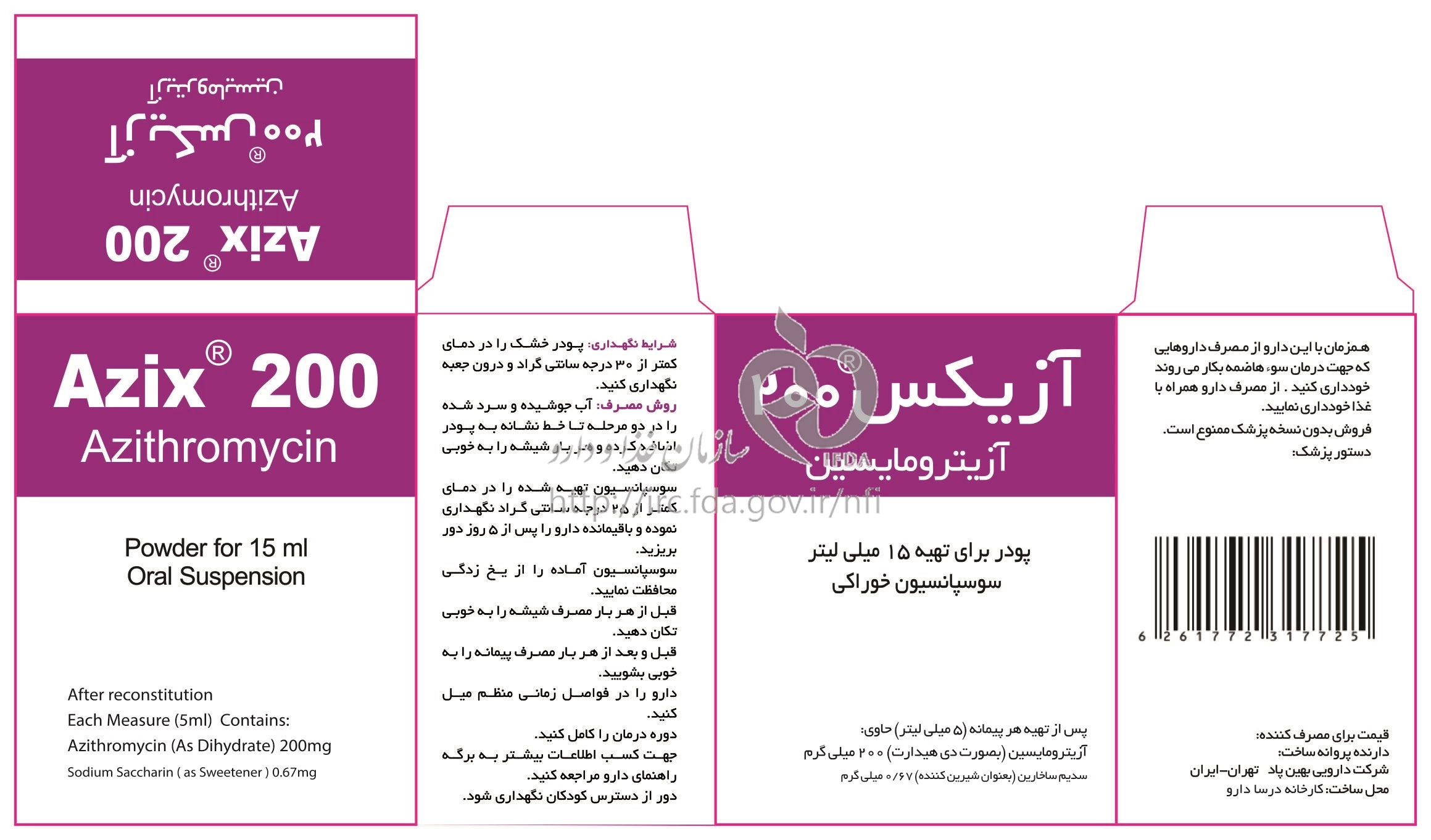 آزیکس پودر برای تهیه سوسپانسیون خوراکی 200 mg/5mL 15MILLILITER
