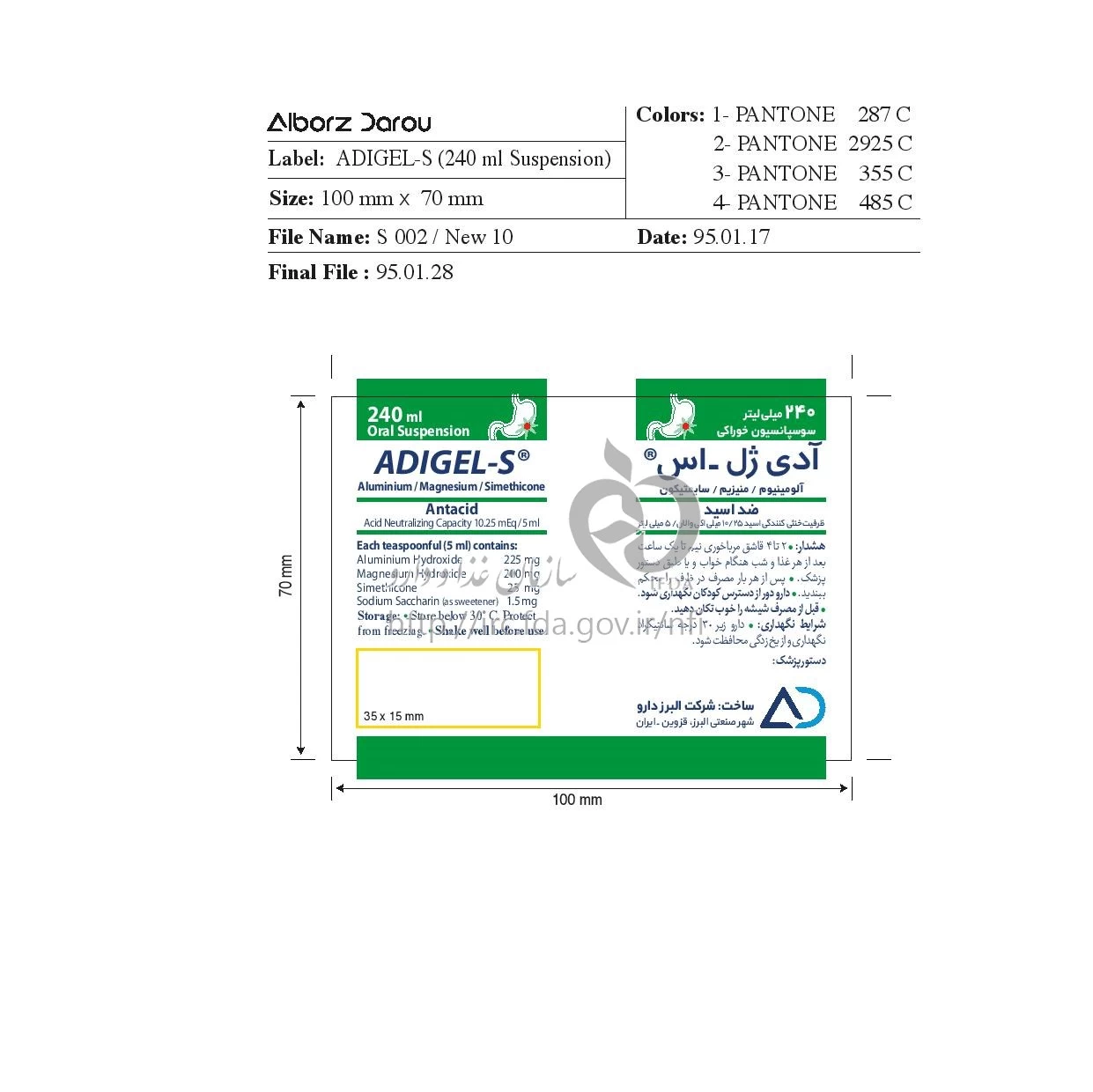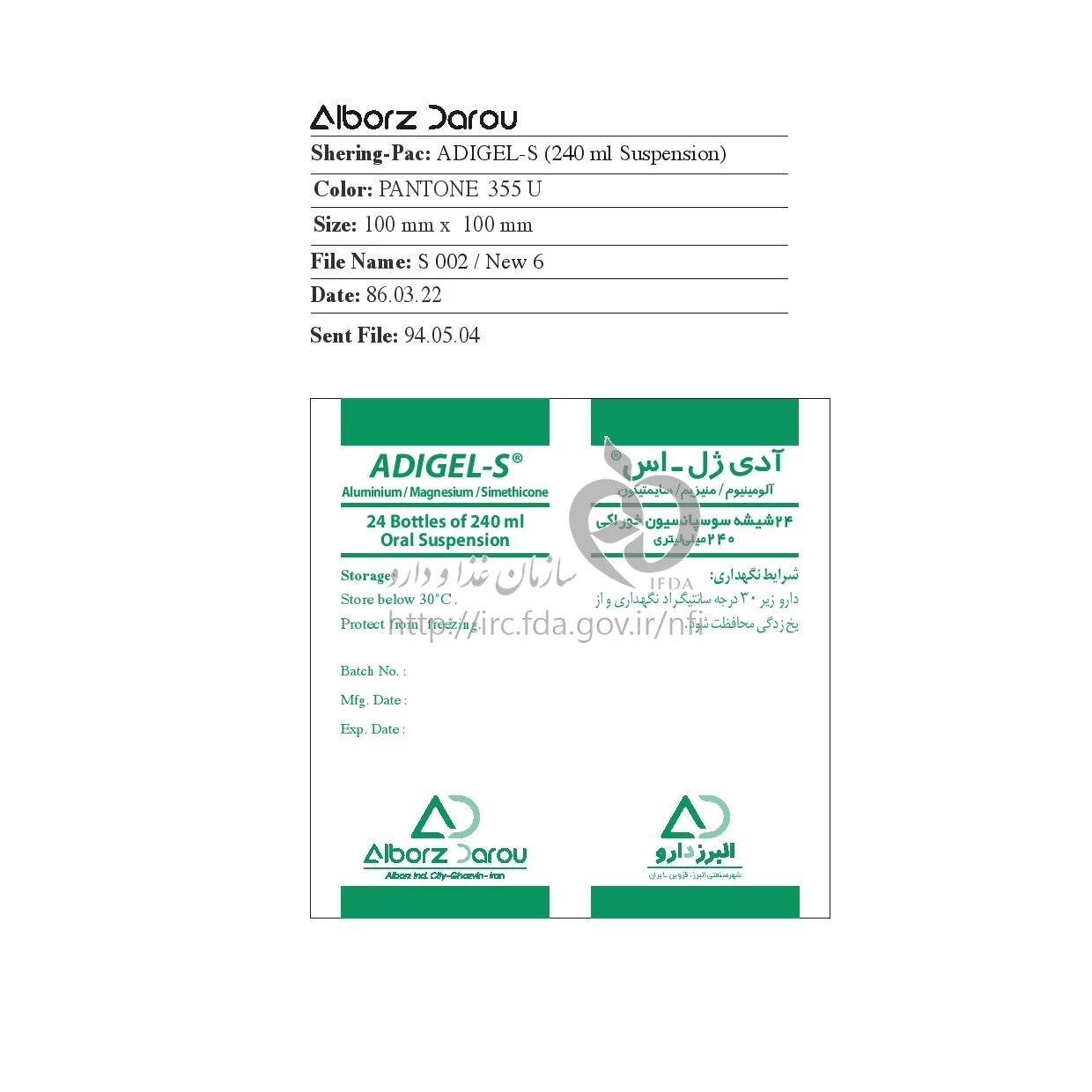 آدی ژل - اس سوسپانسیون خوراکی 225 mg/200 mg/25 mg/5mL 240MILLILITER