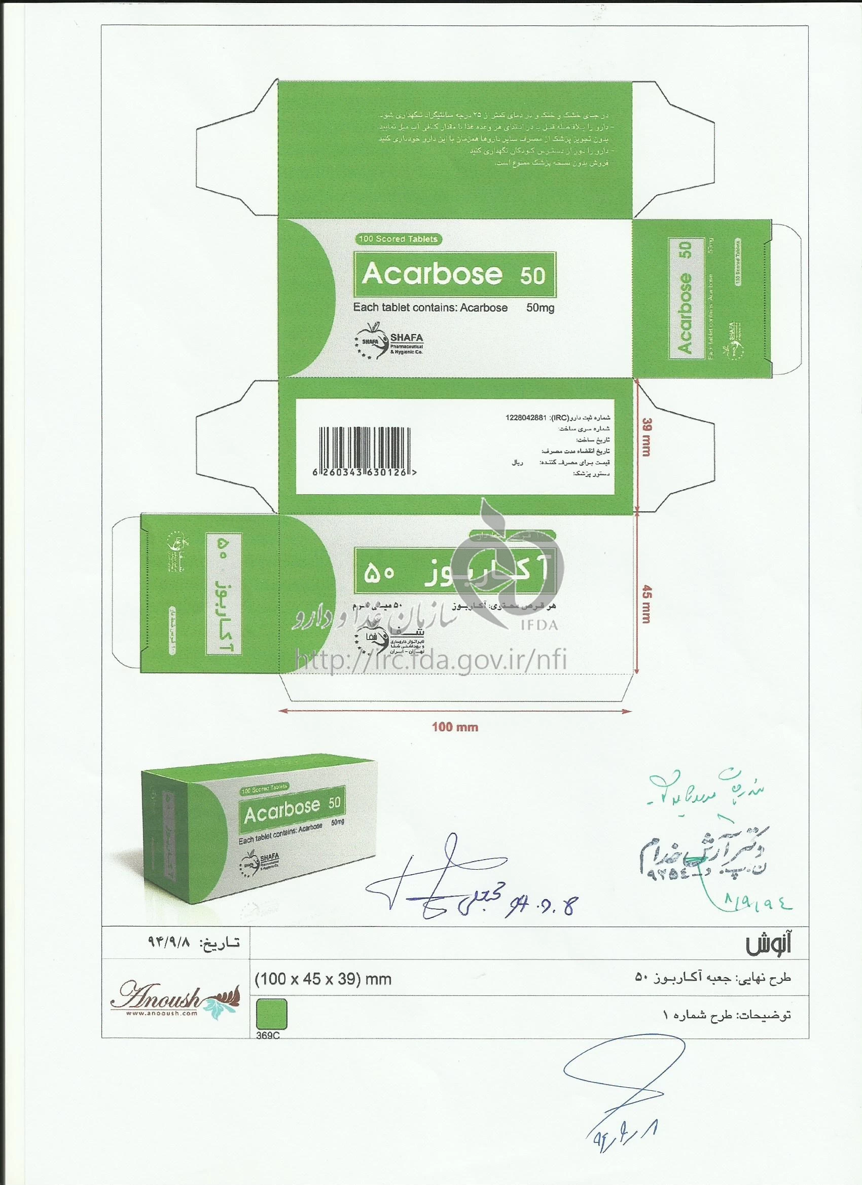 نکات قابل توصیه آکاربوز - شفا قرص خوراکی 50 mg