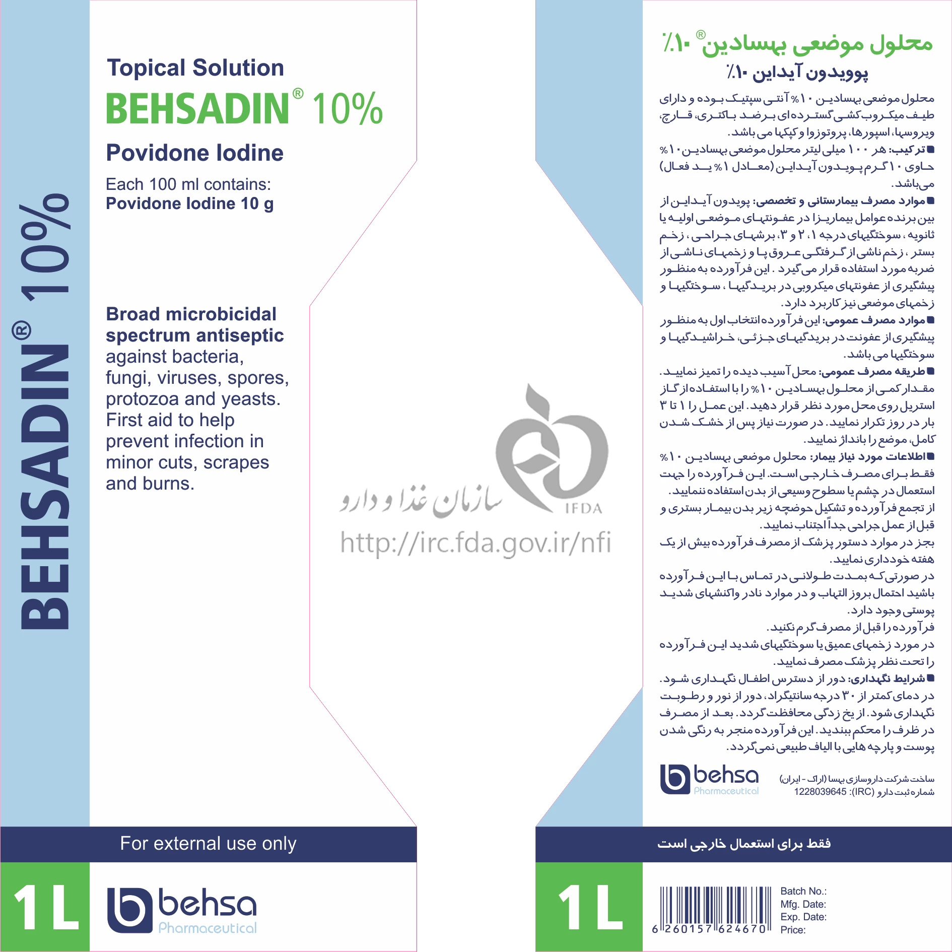 بهسادین محلول موضعی 10 % 1000MILLILITER