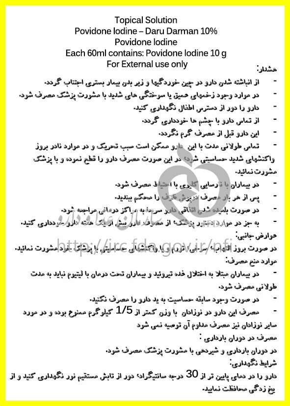 پوویدون آیداین - دارو درمان محلول موضعی 10 % 60MILLILITER
