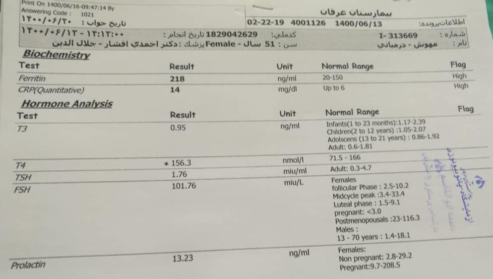 آیا وقتی این آزمایشات را انجام میدادید هنوز قرص لووتیروکسین می خوردید یا نه . اگر نمیخورید چند وقت بود که قطع کرده بودید .